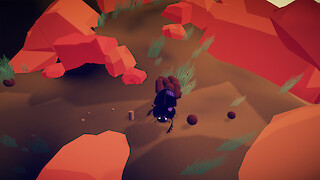 Jeder wollte das doch schon Mal: in die Rolle eines Mistkäfers eintauchen und Mist herumrollen. Auf Codeebene steuern die Spieler:innen die Kugel, jedoch war es mir wichtig, ihnen das Gefühl zu geben, dass sie den Käfer bewegen. Präzise ausgedrückt, steuern die Spieler:innen im finalen Spiel die Absichten des Käfers, in dem sie ihm die Richtung vorgeben. Zur Player Guidance deute ich mit bewussten Kameraeinstellungen den Weg an. Ich habe auch sehr viel Zeit ins Gamefeel gesteckt – der Controller muss sich gut anfühlen und das Stossen soll für die Spieler:innen nachvollziehbar und erlebbar sein: Controller Rumble, Audio Feedback und auch die Procedurale Animation des Käfers hauchen dem Käfer mehr leben ein.